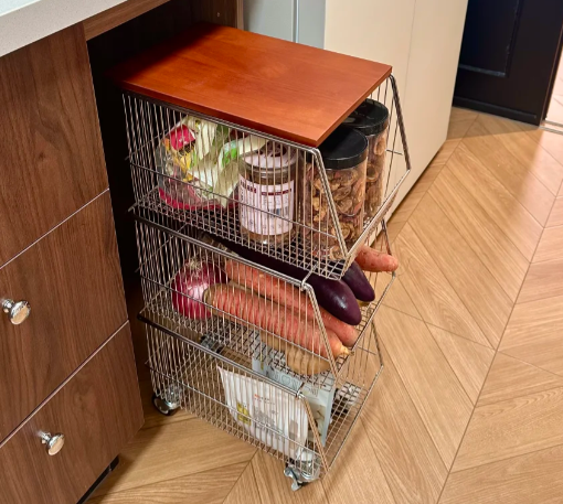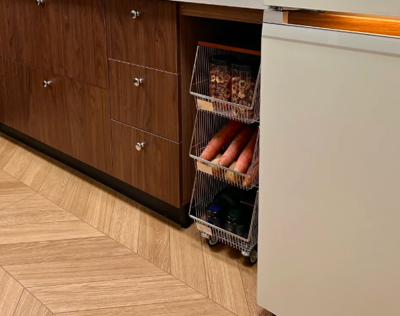 如果你家转角位置比拟深,放柜子愚弄率小,可以作念镶嵌式小推车,用来收纳多样食材和厨房物品,自带小轮子来往拉都很顺遂。