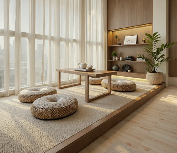 阳台可以打造一个安闲区,这里作念一个小地台,上头放上小垫子和桌子,岂论是阅读,依然喝茶聊天都很可以,活命险些不要太爽。