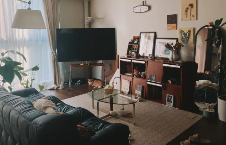 此次装修我决定运行施行去客厅化的缠绵,把迂回的大茶几径直扔掉了!